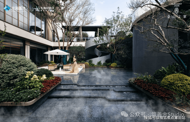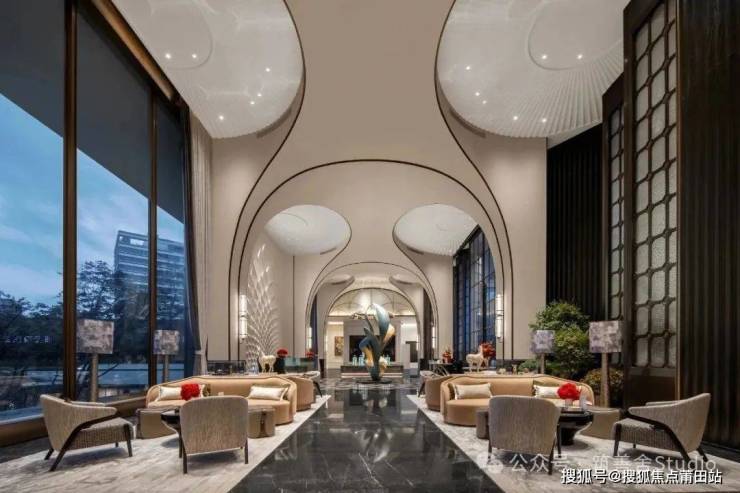 打造“金冠凤首”独特诗意人文风格海派建筑,以“翱翔天际”的流畅建筑曲线与无限延伸的镜面天幕立面,绘就金山居住美学新境界。