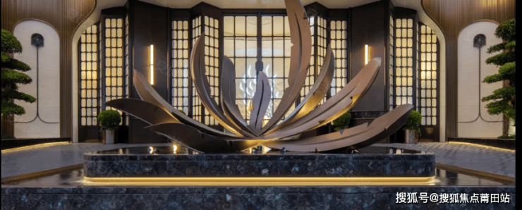公区配置高端:约 38 米宽的酒店式入口借鉴华尔道夫酒店对称设计,约 7 米挑高文冠穹顶大堂,归家仪式感十足。甄选 32 种奢石,以 107 项严苛工艺展现豪宅美学素养,还设有 “百鸟朝凤” 纯铜雕塑迎宾水景等。