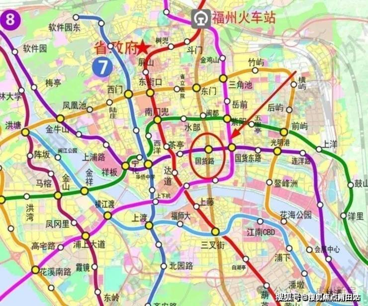 出让公告显示,福州宗地2023-43号位于台江区五一中路与国货西路交叉口西北侧,补充公告明确该地块周边将规划建设地铁8号线“五一南路站”。