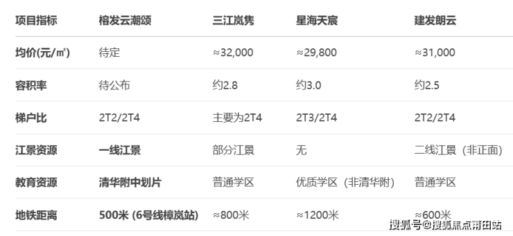 从对比可见,榕发云潮颂在江景资源、教育配套和交通便利性方面都具有明显优势。