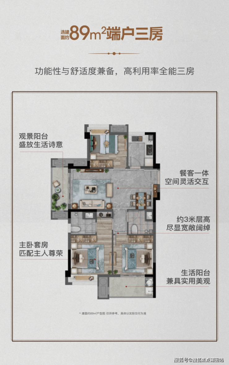 89平方米三房户型:作为市场上主流的户型之一,89平方米的三房户型设计更加宽敞舒适,空间利用率高。动静分区明确,卧室分布合理,能够为家庭成员提供更加充裕的生活空间,同时兼顾了居住的舒适性和私密性。