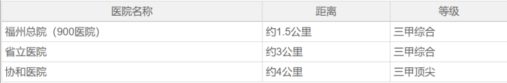 分析:鼓楼医疗资源冠绝福州,项目周边3公里内覆盖多家三甲医院,就医便捷。