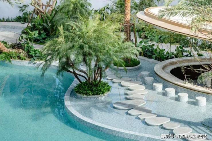 半圆卡座,并打造弧形吧台,巧妙地与泳池的灵动。
