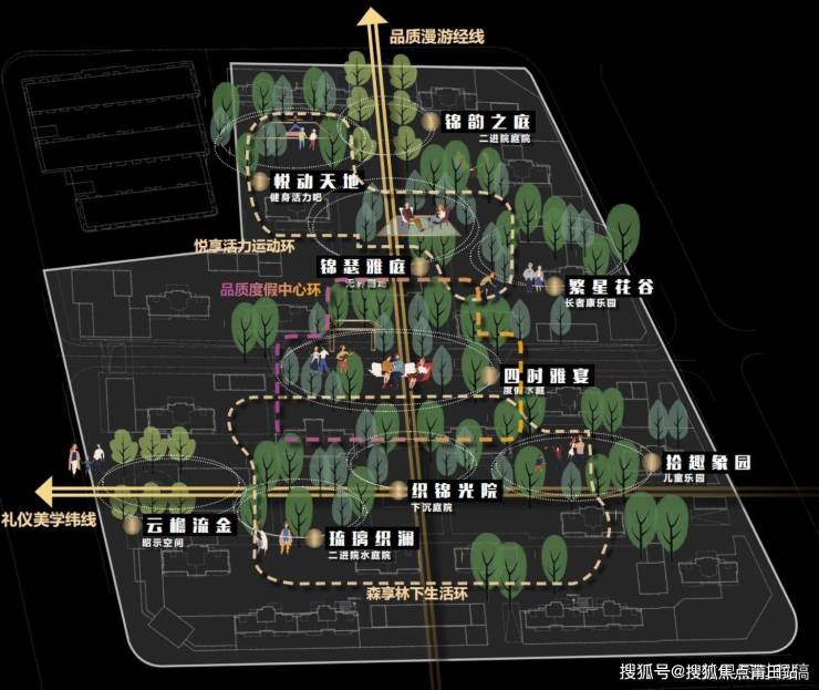 榕发·锦珹大观在景观设计上同样下足了功夫。融合福丝榕绣技法,编织出四进归家礼序,两轴、三环、九韵的布局让景观层次分明,流动的丝带交织串联,营造出一种仪式感与精奢感并存的度假氛围。无论是归家还是漫步其中,都能感受到一种前所未有的舒适与惬意。