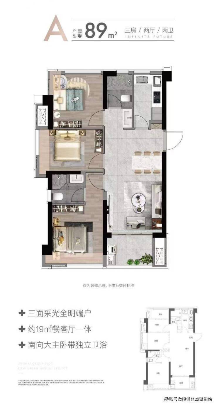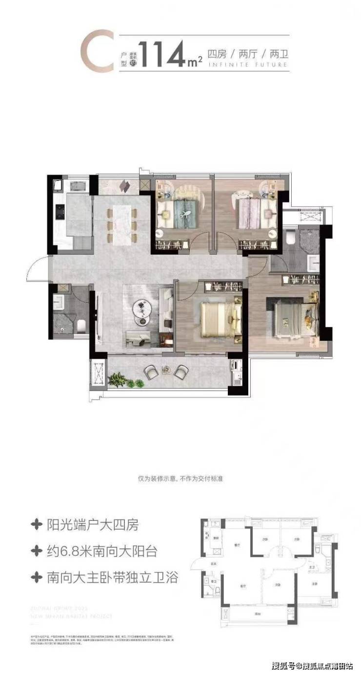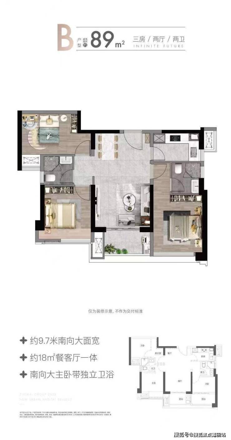 户型面积:建面约89㎡三房,114㎡四房