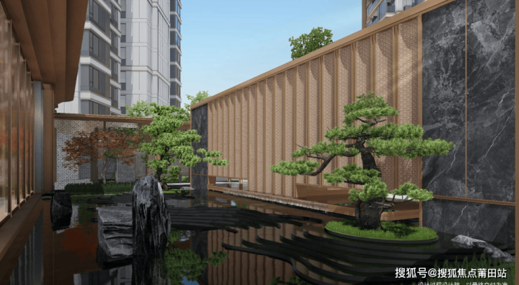 大门处设有水系景观,设计理念“风管人丁水管财”源自传统建筑文化对人与自然和谐共生的追求。