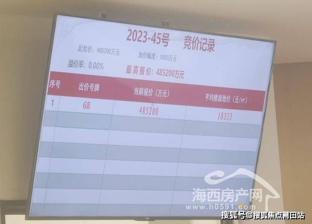 在2023年11月18日福州举行的国有建设用地使用权公开出让活动中,福州建发集团经过1轮竞价,以底价48.52亿元竞得福州宗地2023-45号,楼面地价18333元/㎡。