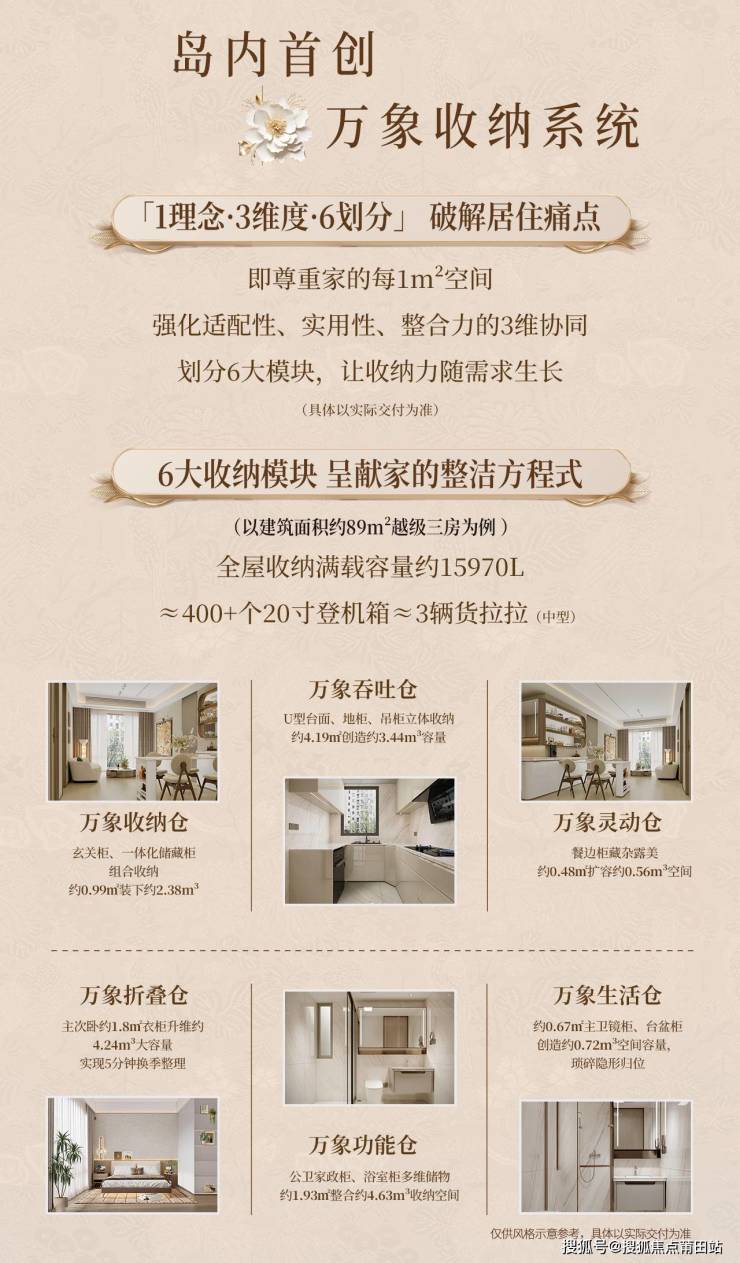 岛内首创的屋顶花园(1、2、6#楼栋配备)和万象收纳系统也是重要卖点。