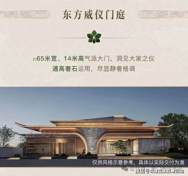 新宋式东方主义风格,融合闽南红砖厝肌理与现代玻璃幕墙,入口处65米宽中式府门采用非遗剪瓷雕工艺。