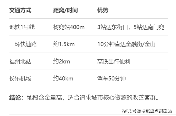 2. 交通枢纽:地铁1号线双站(树兜站400m、斗门站418m),2km直达福州北站。