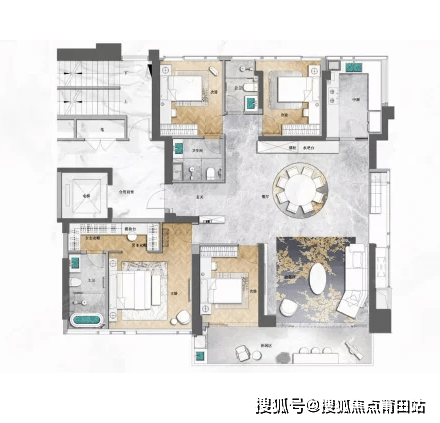 归家动线:打造了六进归家礼序,一进云檐鎏金,二进落客庭院,三进礼宾大堂,四进琉璃织澜,五进盘金云峡,六进归家花园,营造由喧至静的情绪切换。