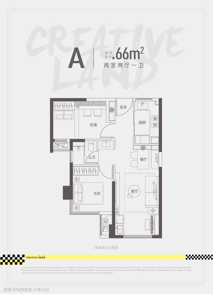 其中,66㎡2房1卫户型三开间朝南,客餐阳台一体化设计,卫生间三段式干湿分离,整体使用率较高。