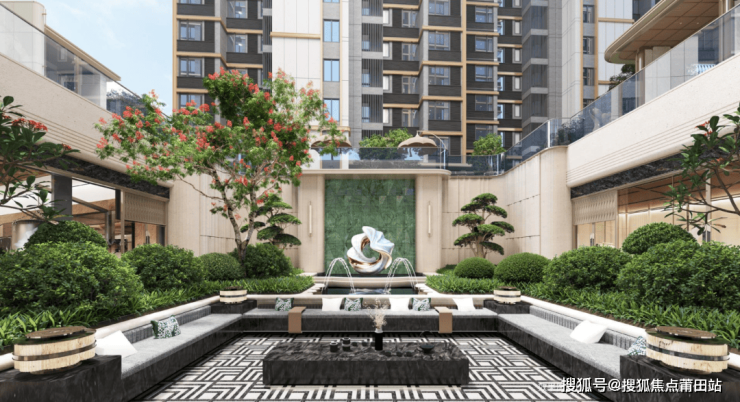 社区采用海派风格,中心花园与下沉式会所构成了社区的核心景观,五大主题架空层则提供了丰富的社交与活动空间。