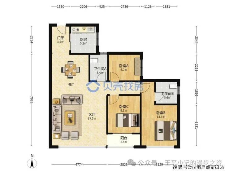 小区总价最低的,最小面积的就是110平的户型,下面要介绍的是110平朝南的户型,主要分布在小区的5、6、7、8号楼的02和03单元。这种户型的优势就是朝向比较正,冬天阳光非常充足,夏天又没有西晒,且这种户型是凸出来的,冬天的阳光不管是上午还是下午不会被隔壁130的户型遮挡,喜欢光照足的客户,比较适合。其次就是三个房间大小都比较平均,两个次卧都很大。不足之处,也是很多客户这种户型下不了手的痛点就是晾晒问题,晾晒区在客厅的窗户外面,家里要是来客人,看着晾晒的一排排衣服,不是特别美观,客厅晾晒也会影响一些采光。