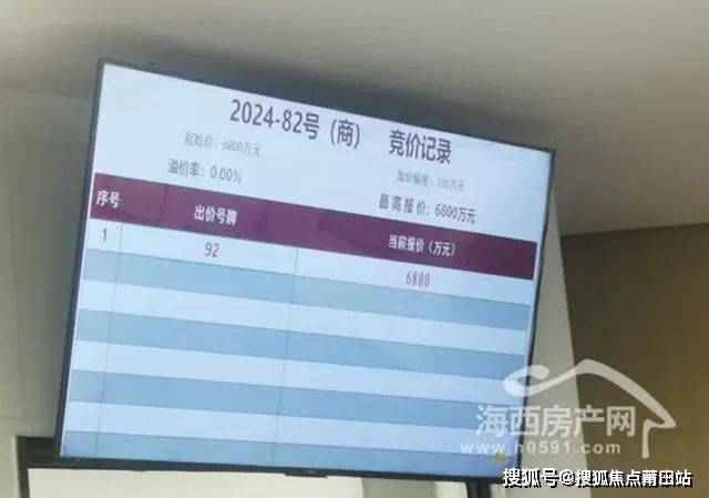 2024年11月15日,经过1轮竞价,92号竞买人福建省榕圣建设发展有限公司以6800万元竞得福州宗地2024-82号,楼面地价5786元/平元/㎡。