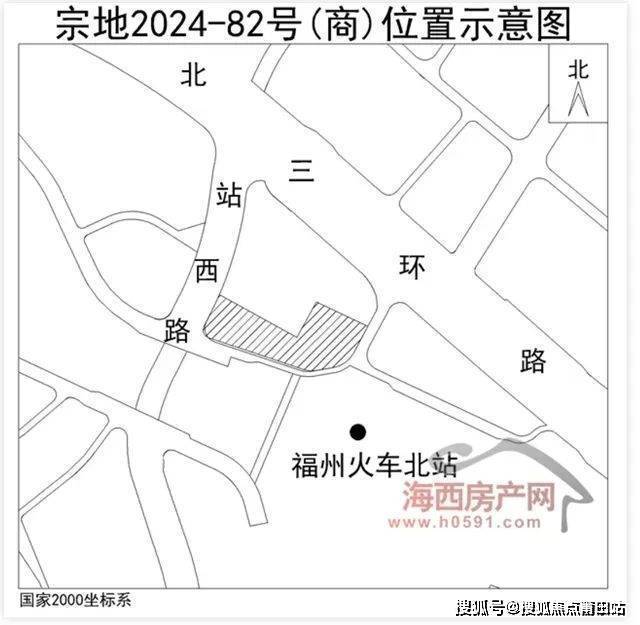出让公告显示,福州宗地2024-82号位于晋安区站西路东侧,火车北站L4(A-25-3)出让地块,土地用途及出让年限为商业(含酒店)用地40年、交通场站用地50年。
