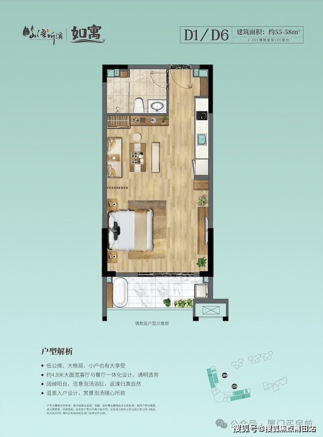 产品信息 【别墅产品】别墅面积为220-350㎡,联排和类独栋户型可选,别墅为1-4层,带独立庭院、花园、车位、阳台、露台和温泉入院,折后总价380万起