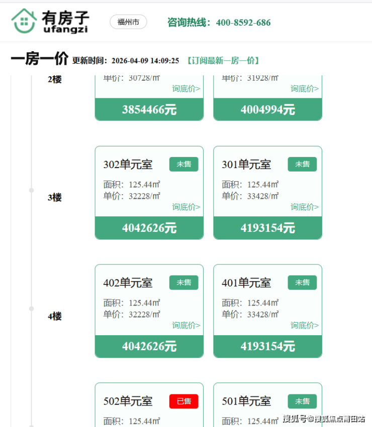 从一房一价公示信息来看,不同楼层的价格差异明显。以125.44㎡的户型为例,低楼层单元单价约30728元/㎡,中高楼层单元单价可达36728元/㎡以上,一房一价的具体数据已经可以在相关平台上查询。