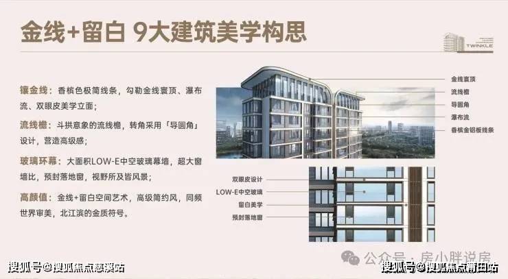 ⊚高颜值:金线+留白空间艺术,高级简约风,同频世界审美,光明港上的金质符号。