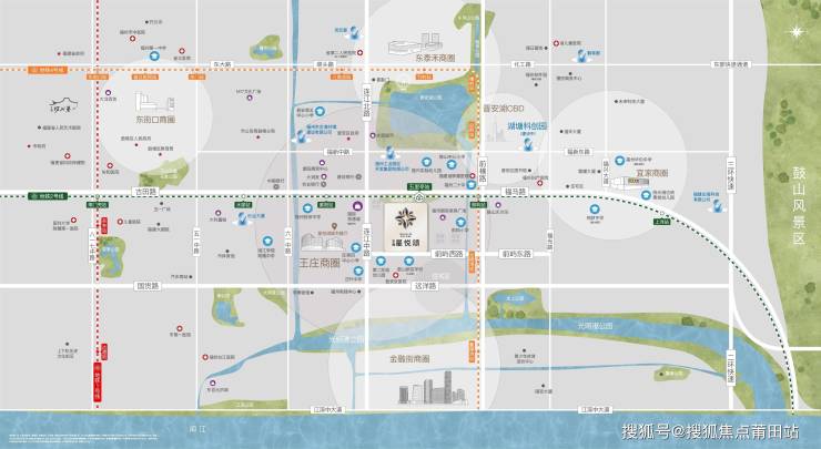 咫尺百万平米城市商业配套,直线距世欧广场约1.2km,直线距东二环泰禾广场约1.8km,直线距金融街万达广场约2km,直线距晋安湖CBD约1.4km,直线约2公里内尽享繁华高定生活。