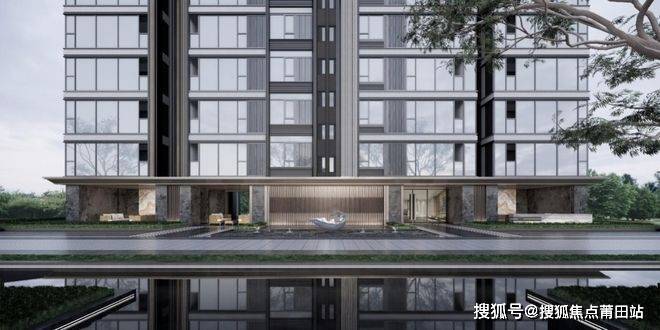 立面设计以简约、时尚为主基调,精致简约,讲究尺度的把控,大面简约,局部细节刻画。通过横向线条,不同的建筑色块,从大比例上控制建筑形象。主要墙体以米白色、深灰色涂料及大面积玻璃作为墙面的主要材料,加上铝合金型材的线条。建筑整体挺拔,干净整洁。底部近人尺度,通过建筑材料以及格栅、门头、线脚等较为细腻的建筑细节,着重塑造温馨、宜居的建筑氛围。