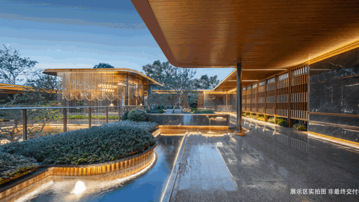 内外空间渗透,模糊界线。身处其中,你能随游廊转折,感光影交错,享受此刻宁静和谐;也可以在功能区内,以流水潺潺为伴,或冥思、或洽谈、或挥汗如雨...。