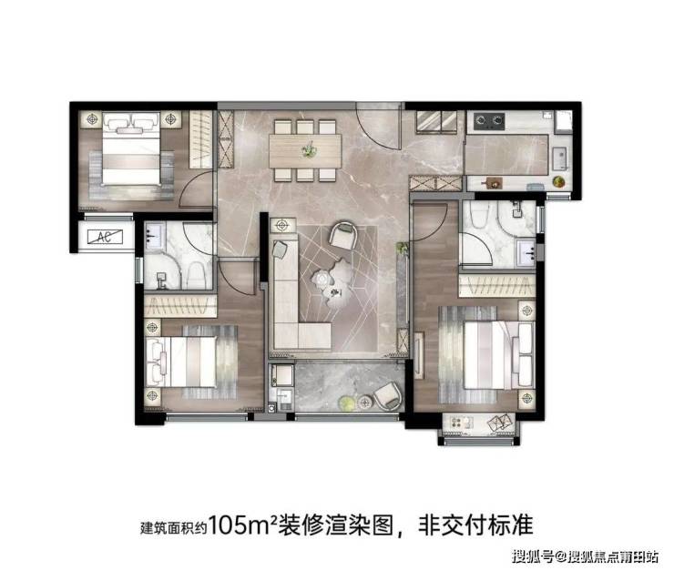 建筑面积约105㎡(2梯3户中间套)三房两厅两卫