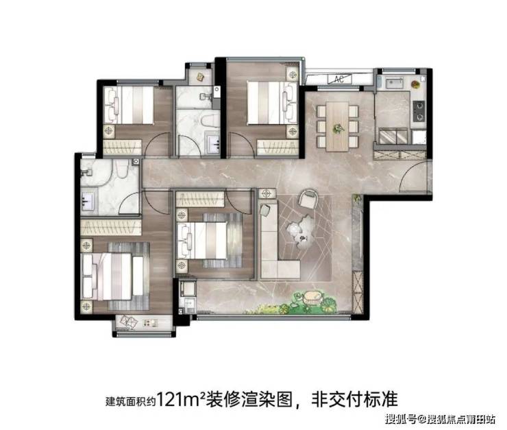 建筑面积约121㎡(2梯3户边套)四房两厅两卫