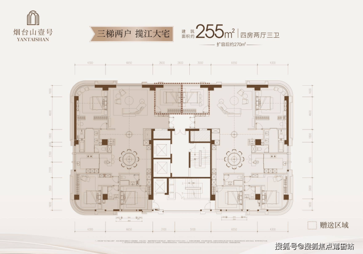 单套建筑面积约255㎡,扩容面积约270㎡;