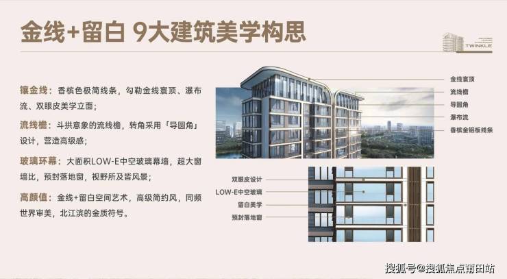 ⊚高颜值:金线+留白空间艺术,高级简约风,同频世界审美,光明港上的金质符号。
