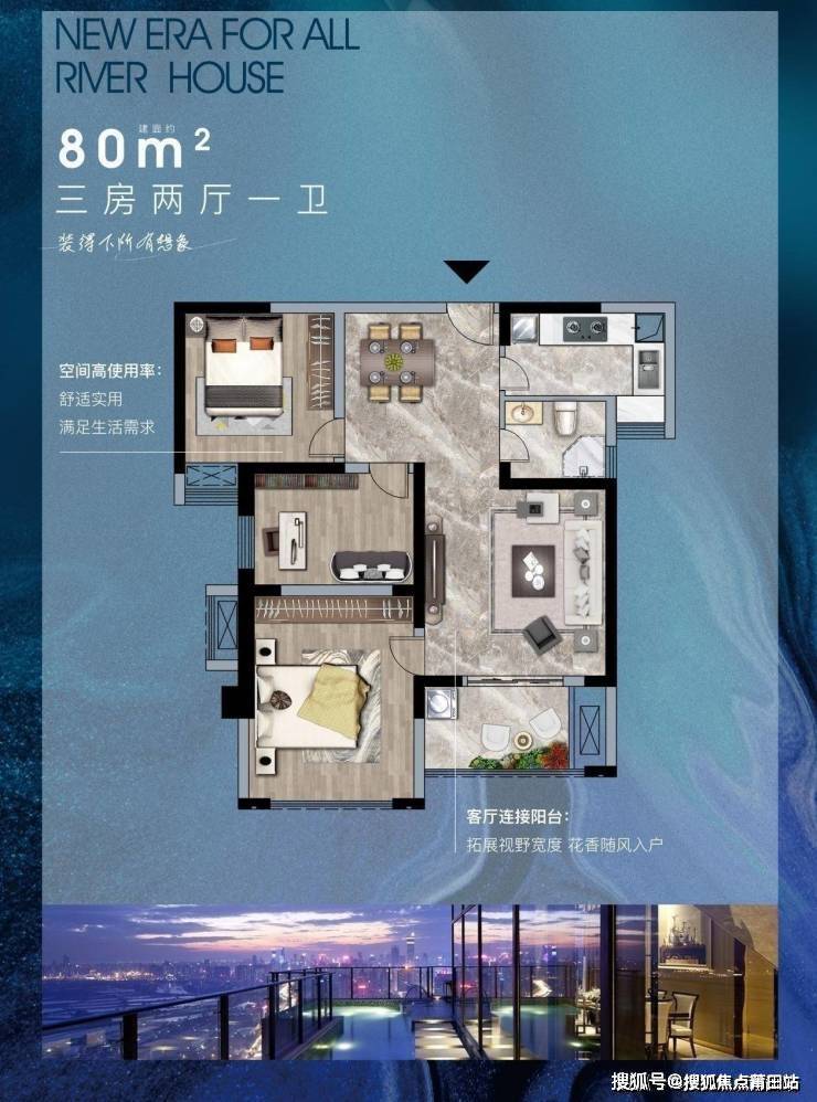 80平三房两厅