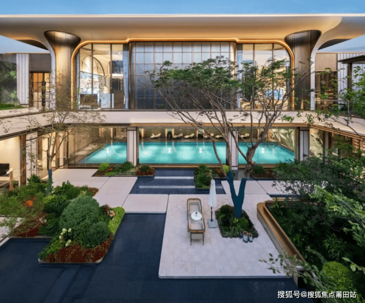 值得一提的是,整个地下会所与约460㎡下沉式庭院高度融合,超高的玻璃幕墙设计,让室内与室无界交融。不管是在游泳、健身还是下午茶,都能享受到满眼绿意。