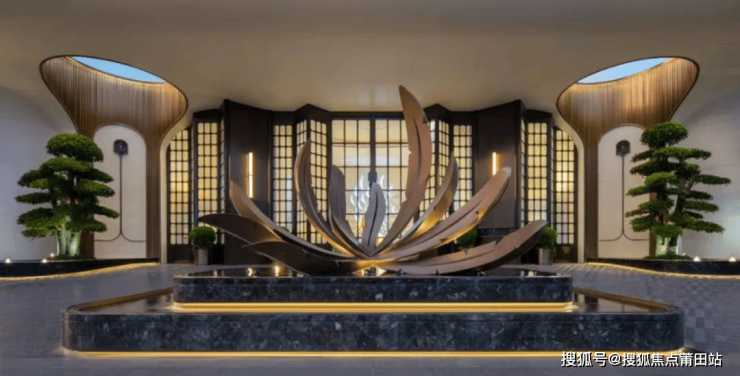 其次,左海·金山文翠在归家体验方面很会“拿捏”人心,一开场便是约38米的酒店式归家大门,其以深圳南山香格里拉酒店为设计灵感,入口两侧对称布置,整齐列阵,气场拉满。并以蓝翡翠奢石为底座、“百鸟朝凤”的纯铜雕塑,再加上约7米挑高的文冠穹顶大堂,以恢弘气势奠定了归家的“第一眼震撼”。