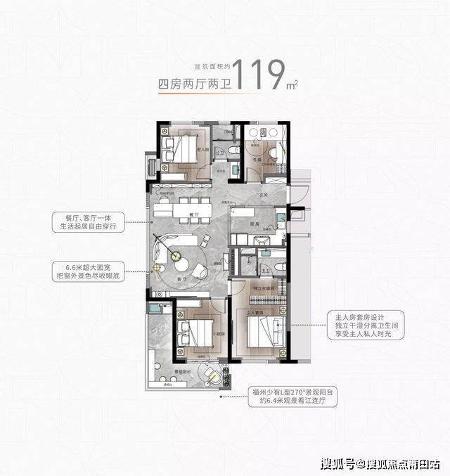 相当于一套119㎡的房间,直接多出一个房间能拥有最佳室温,而这个房间里住的可能是父母或孩子。