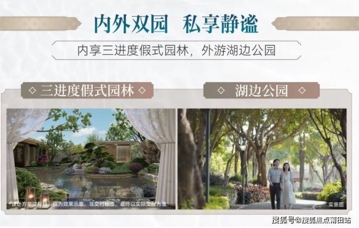 园林设计:以“一轴三园,五进九景”规制打造约1.5万㎡江南园林。主入口借鉴拙政园“移步换景”手法,设置月洞门、影壁墙及湖石叠水景观;宅间按“春夏秋冬”分区种植樱花、荷花、银杏、松竹,四季景致各异。