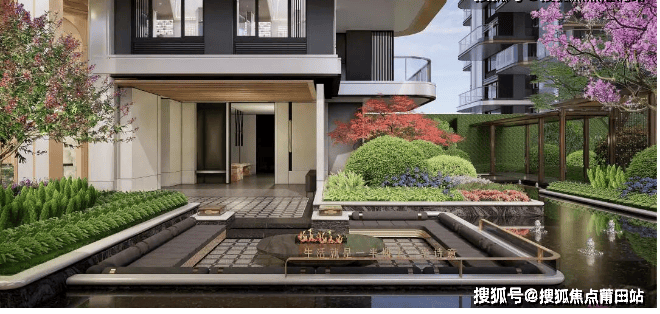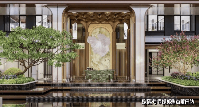 约55米宽森奢酒店式门厅,超流体华丽的厅檐勾勒艺术天际,弧形艺术普拉达绿奢石,香槟金艺术格栅,铺陈高贵典雅的归家礼序。门前开阔的广场,设置环岛落客水景,营造出静谧雅致的氛围,让每一次归家都成为一场心灵的洗礼。