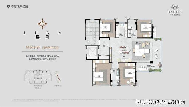 超五星级酒店主卧套,尊崇私密的居住艺术与对品质生活的极致追求得到了完美的体现;动静分区布局合理,满足塔尖人居标准,无论是家庭的欢聚还是个人的沉思,都能得到理解与尊重。南北双阳台,充分满足精神和居住的双重需求。