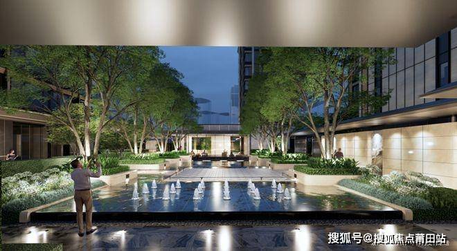 保利屏西天悦跳脱常规,打造了约500㎡中庭水景。