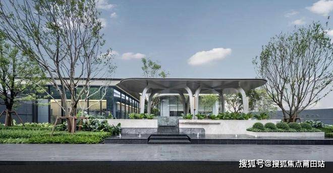 一进入小区就是大面积的喷泉水景,增加了空间的灵动感,搭配层次分明的乔灌木,美不胜收。