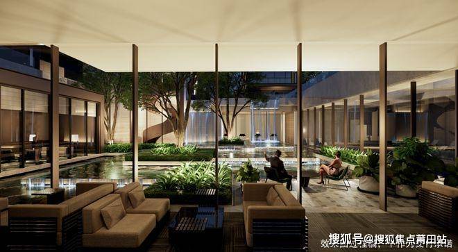 打造了约1000㎡下沉景观庭院会所,不仅有常规的健身房、茶室,还有自然采光的恒温泳池、商务洽谈的行政酒廊等。