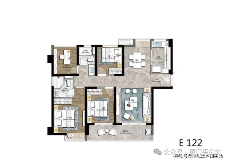 双卫生间设计,让生活慢下来,多开间朝南,空间方正,全明设计,180度开阔视野,一步一景多重视界。