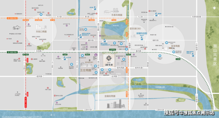 咫尺百万平米城市商业配套,直线距世欧广场约1.2km,直线距东二环泰禾广场约1.8km,直线距金融街万达广场约2km,直线距晋安湖CBD约1.4km,直线约2公里内尽享繁华高定生活。