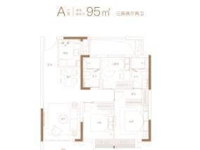 95-96㎡ 3 房 2 厅 2 卫:刚需热门,全明通透,双卫设计