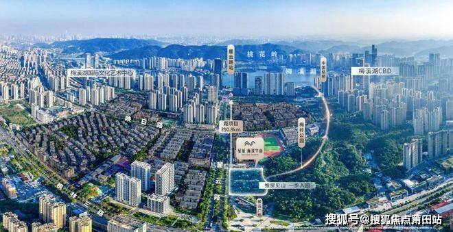 在这个过程中,绿城将理念、资源、审美多重融合。因此在理念上我们可以看到,绿城的“让山居成为一场艺术”,将山景与建筑共生的理念注入每一寸空间;资源上:项目择址的梅一北岸是片区难得的福祉,1.5km生活圈内涵盖了1个山体公园+1大CBD+3个地铁站+6所品牌学校+8大集中商业,山、园、湖、城万物皆合于此;审美上:经典的绿城Super Flat超平立面,大面积落地玻璃,嵌入横向斜切的金属线条,270°山景转角窗打破室内外边界……
