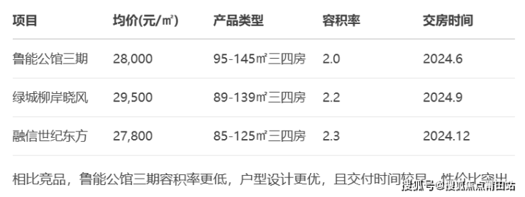 与周边同类项目相比,鲁能公馆三期在价格、产品力和配套方面具有综合优势。