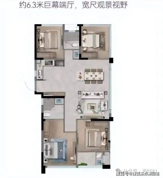 以前这种面积段的基本都是两房朝南,一房朝北,朝北的房间采光有一定的影响,这种三房皆为南向的户型,之前没接触过。