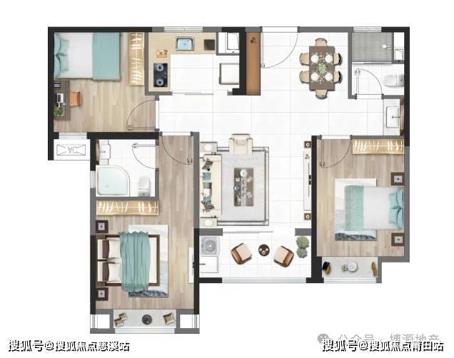 方正三房:动静分离,聚会休憩互不干扰L型厨房:让烹饪成为一种轻松的享受格局通透:阳光与新风犒赏家庭时光南向阔厅:直连景观阳台,饱览一园诗画