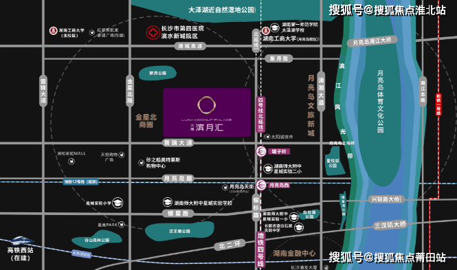 交通配套:地铁 4 号线罐子岭站为该项目预留了一个地铁站出入口,近抵兴联路大桥、三汊矶大桥,坐拥银杉路、普瑞大道、潇湘北路三大主干道,交通出行十分便捷。
