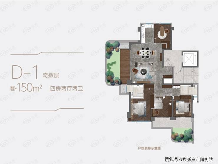 150平方+独立门厅,玄关入户,彰显世家大境+全端户三面采光,流光之境写意塔尖排场+双庭院露台,境取自然,听风揽月叙闲情+主卧套房悦见庭院,拾目所及尽风光。