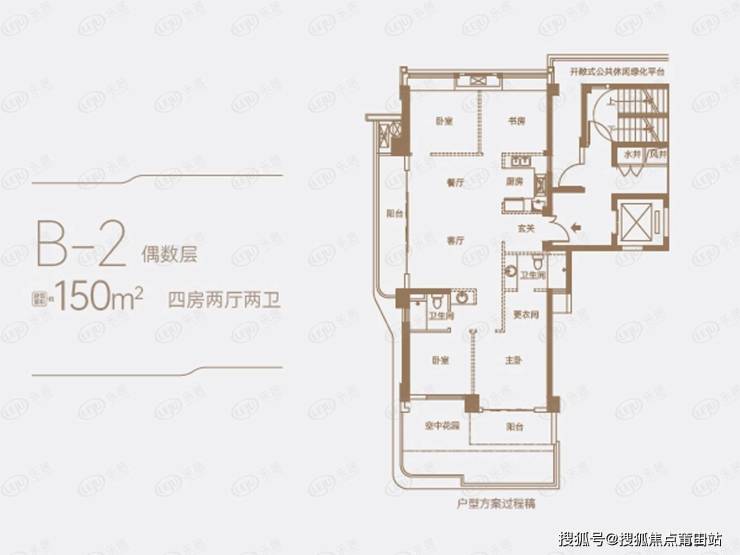 户型直接影响居住体验,较好的采光、通风、较短的归家活动动线,动静分区,都将提升居家生活体验。如下图B-2户型